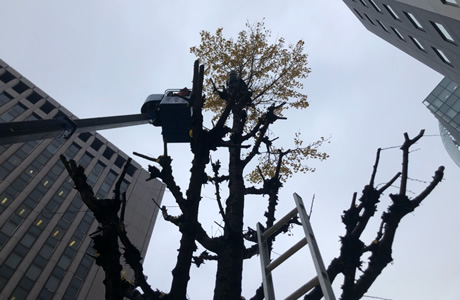 中区 空爆に耐えたイチョウの木の剪定 -